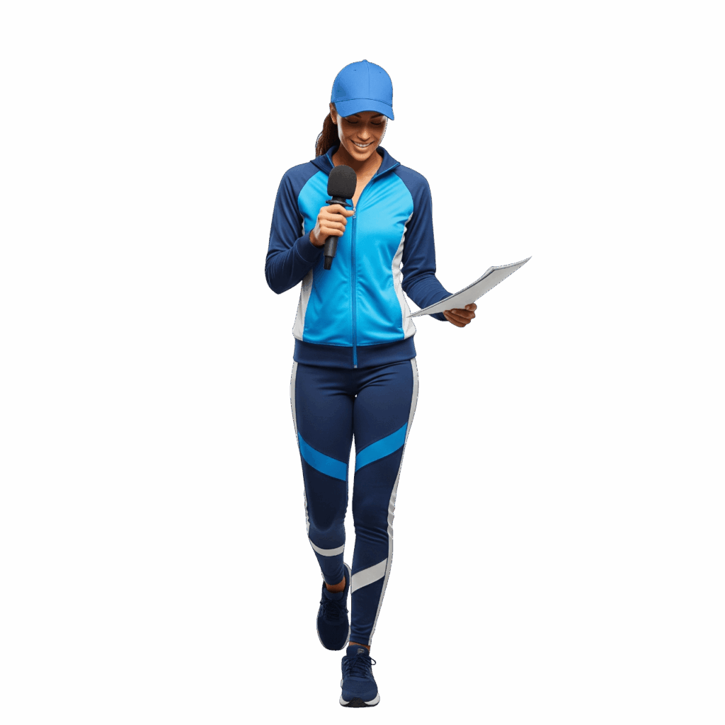 Como oradora o speaker, me encargo de dirigir eventos deportivos, promoviendo la energía y el clima necesarios para el éxito de cada actividad. Desde la planificación hasta la ejecución, actuaré como la figura central que guiará a todos los asistentes, asegurando una experiencia única y adaptada a cada necesidad específica.